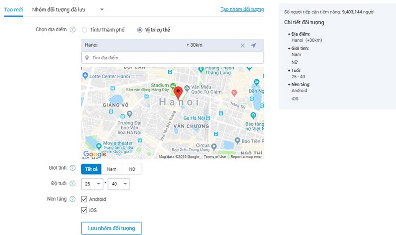 Bước 2: Tạo quảng cáo theo nhóm đối tượng đã lưu
